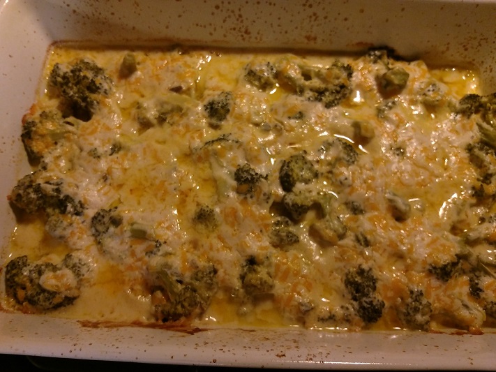 You know how it is when you have no time, running late, or kids need to be somewhere. Seems like we’re always in a hurry but yet we all need to eat, right? Well this particular night I was baking chicken. Your start looking in the pantry, cabinets and refrigerator. A couple of days prior I had purchased fresh broccoli but didn’t want it steamed or plain. But I love broccoli and I looked in the pantry, saw cream of mushroom soup and bells went off in my head. I knew I had sour cream and cheddar cheese because this household is never without. Plus how can anything be bad if cheese and sour cream are involved? My thoughts exactly!