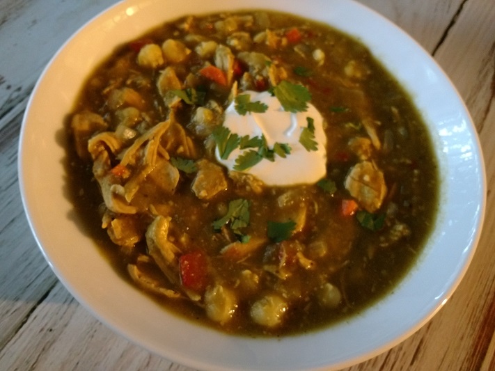 Next time you get a hankering for a tummy warming bowl of soup, give my Chicken Verde Hominy Soup a try. Enjoy the tangy tomatillos and slight heat of chiles, chunks of chicken and tender hominy. It’s a beautiful combination and even makes a great lunch the next day or two. Kids will enjoy this soup especially served with tortilla chips. Sure to become a new family favorite and let’s not forget about football Sundays. Perfect soup for a large crowd. Leave me a comment if you make this recipe.
