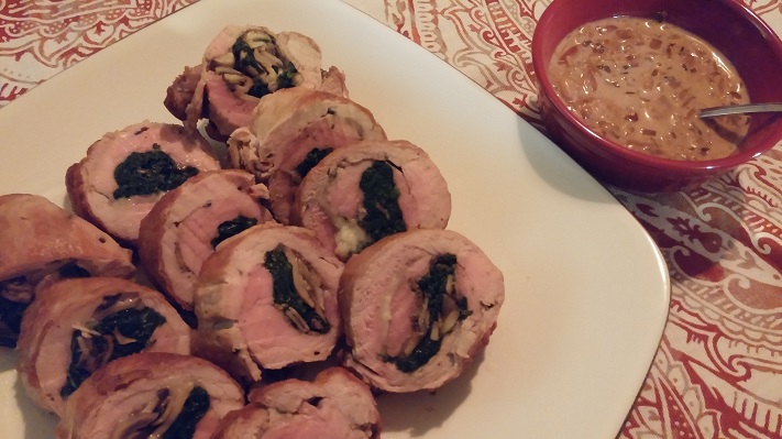 Mushroom & Spinach-Stuffed Pork Tenderloin with Sherry Cream Sauce