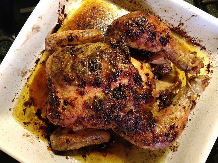 Let chicken rest 15 minutes then baste again. Remove chicken to serving platter and cut into pieces, drizzling on any remaining juices over. Serve with your favorite side dishes or tossed green salad.